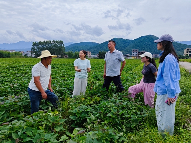 首站,科技特派员抵达黄关镇兴秀村红薯种植示范基地。据基地负责人文成发介绍,今年基地推广“水稻—甘薯”水旱轮作模式。该模式通过作物交替种植,促进土壤养分循环利用,甘薯生长过程中有助于改善土壤结构,为下茬水稻积累肥力,实现“种一季水稻、收一茬甘薯”的生态循环。科技人员实地查看甘薯长势,发现部分田块存在根腐病等问题,随即向基地负责人系统讲解该病的识别特征与综合防治措施,指导开展科学防控。