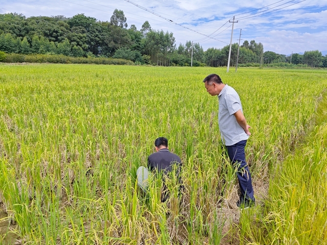 一次播种、两季收获,不仅有效节约人力成本,还提升复种指数与亩产效益,成为农户增收优选方案。科技特派员深入稻田,详细察看再生稻分蘖、株高及孕穗情况,与种植户交流生产问题,并针对后期管理提出建议:一是科学水分管理,孕穗和灌浆期田间保持3 - 5厘米浅水层或“干湿交替”灌溉;二是强化病虫害防控,重点防范纹枯病、稻曲病、稻瘟病及二化螟、稻飞虱等;三是规范收获前管理,成熟前7天断水晒田,为机械化收割创造条件,减少稻谷损耗。