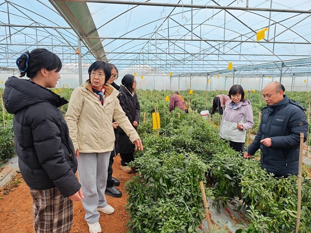 1月26日至27日,由广西农业科学院桂林分院副院长李玉洪及广西蔬菜创新团队桂北综合试验站站长潘玲华带队,团队一行5人陪同国家大宗蔬菜产业技术体系南宁综合试验站团队黄如葵研究员一行3人深入桂林市雁山区和兴安县,围绕桂北秋冬蔬菜产业发展情况展开专题调研。此次调研聚焦于设施栽培辣椒、番茄以及露地栽培叶菜等主要蔬菜品类,旨在了解当前生产现状、技术需求与产业瓶颈,为区域蔬菜产业提质增效提供科技支撑。