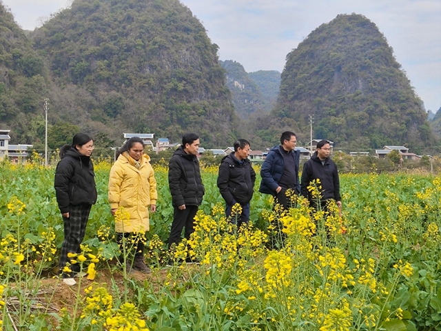 为全面掌握广西冬油菜产业发展现状,精准识别生产瓶颈与技术需求,1月20日至23日,国家油菜产业技术体系桂林综合试验站站长、自治区科技特派员张宗急率领桂林市农业科学研究中心油菜科研团队一行4人,深入南宁、柳州、河池、桂林等地的主要油菜产区,开展冬油菜产业实地调研。本次调研旨在系统掌握各地冬油菜生长实况、病虫害发生动态及技术短板,以提供精准技术指导,保障油菜安全越冬,夯实产量基础。相关市县农业农村局负责人全程协同配合,参与此次调研工作。