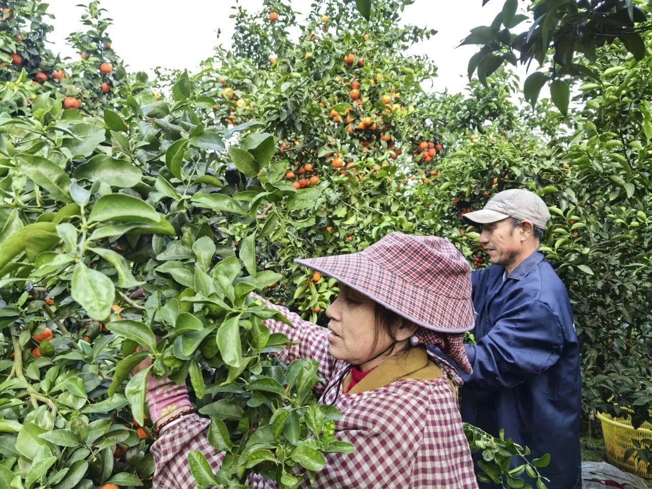 桂林市农业农村综合发展中心主任(右二)到永福县实地调研柑橘采收情况