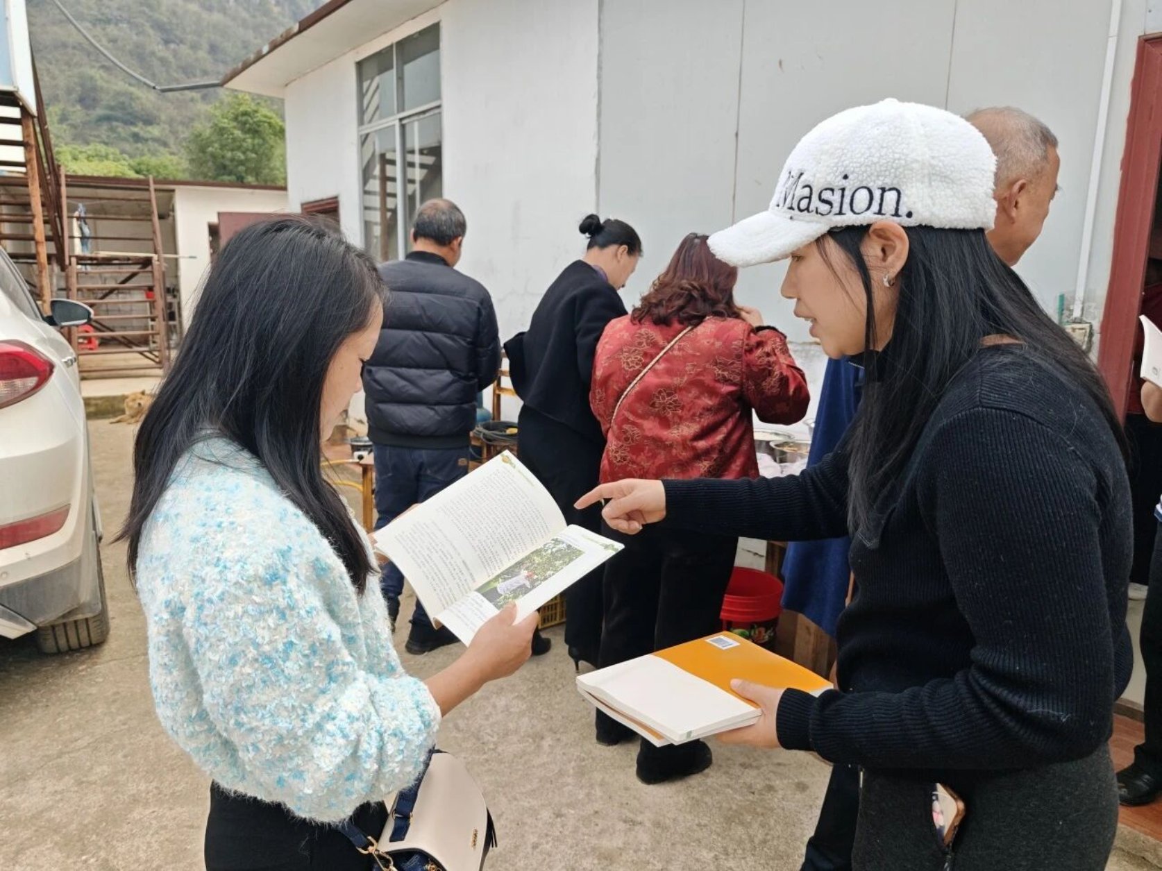 工作人员跟学员宣传政策,发放书籍,指导如何建立家庭农场