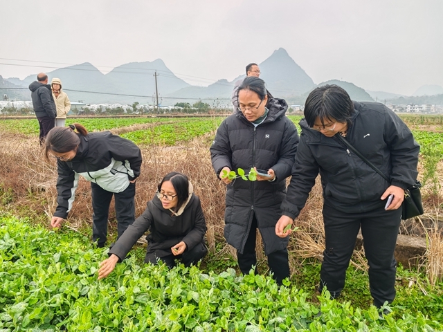 1月26日至27日,由广西农业科学院桂林分院副院长李玉洪及广西蔬菜创新团队桂北综合试验站站长潘玲华带队,团队一行5人陪同国家大宗蔬菜产业技术体系南宁综合试验站团队黄如葵研究员一行3人深入桂林市雁山区和兴安县,围绕桂北秋冬蔬菜产业发展情况展开专题调研。此次调研聚焦于设施栽培辣椒、番茄以及露地栽培叶菜等主要蔬菜品类,旨在了解当前生产现状、技术需求与产业瓶颈,为区域蔬菜产业提质增效提供科技支撑。
