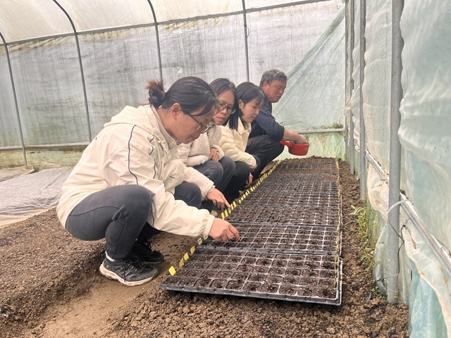 结合资源县高山独特气候与土壤条件,团队科学开展番茄新品种品比试验田间规划,量身制定试验方案,合理划分种植区域,统一试验操作规范与数据记录要求,为全面客观评价新品种的区域适应性、丰产性、商品品质及抗逆抗病能力提供可靠保障。田间布局完成后,团队随即在田间全程指导示范番茄播种育苗工作,对种子处理、苗床准备、播种覆土、苗期管理等关键环节逐一把关,规范操作流程,保障秧苗健壮整齐,为后续新品种试验示范与推广应用打下良好基础。