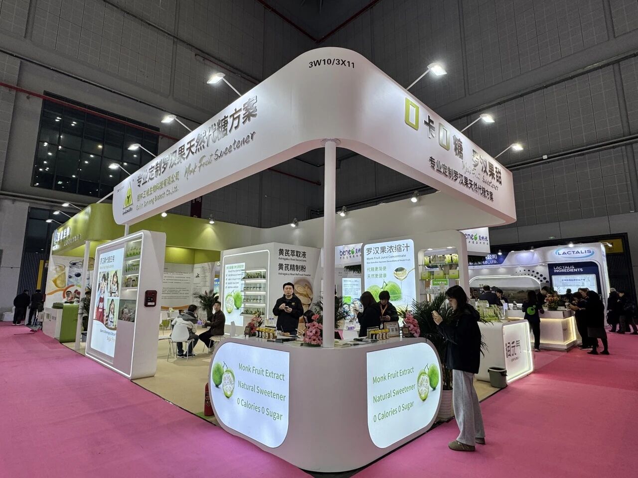 三月中旬,黄浦江畔涌起一股来自八桂的“甜蜜风暴”。永福县名特优农产品协会会员单位——桂林三棱生物科技有限公司,携永福“东方神果”亮相第二十九届中国国际食品添加剂和配料展览会。在好品汇集的上海·国家会展中心,永福罗汉果以其甜度超蔗糖300倍的天然纯粹特质,向世界彰显了“果甜世无双”的品质底气。