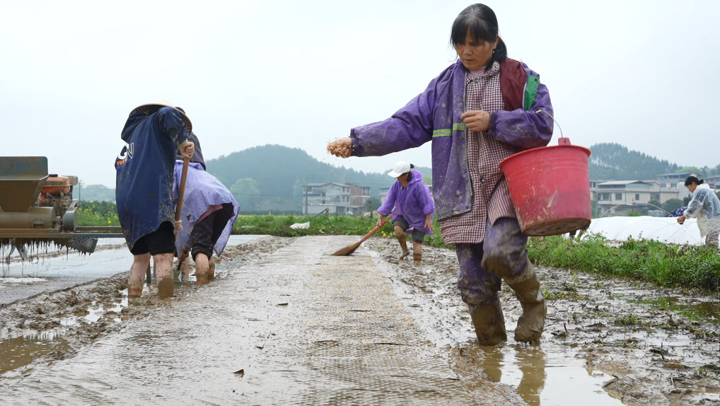 为提升春耕效率,当地积极推广农机应用。使用打浆机将田泥打至细腻均匀、不结块,有效改善耕作条件。与传统人工相比,打浆机作业可节省一半时间,大幅降低劳动强度、提升整地质量,为机插、高产栽培创造有利条件。