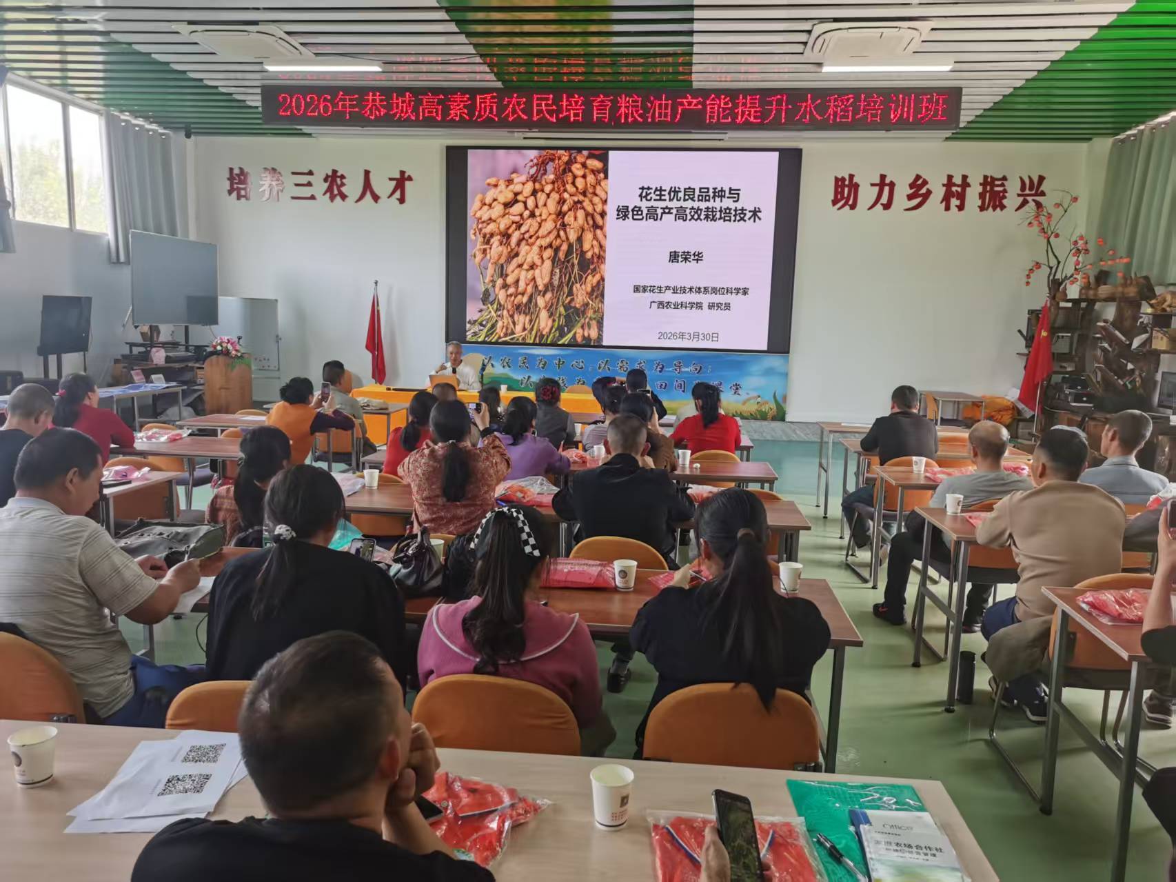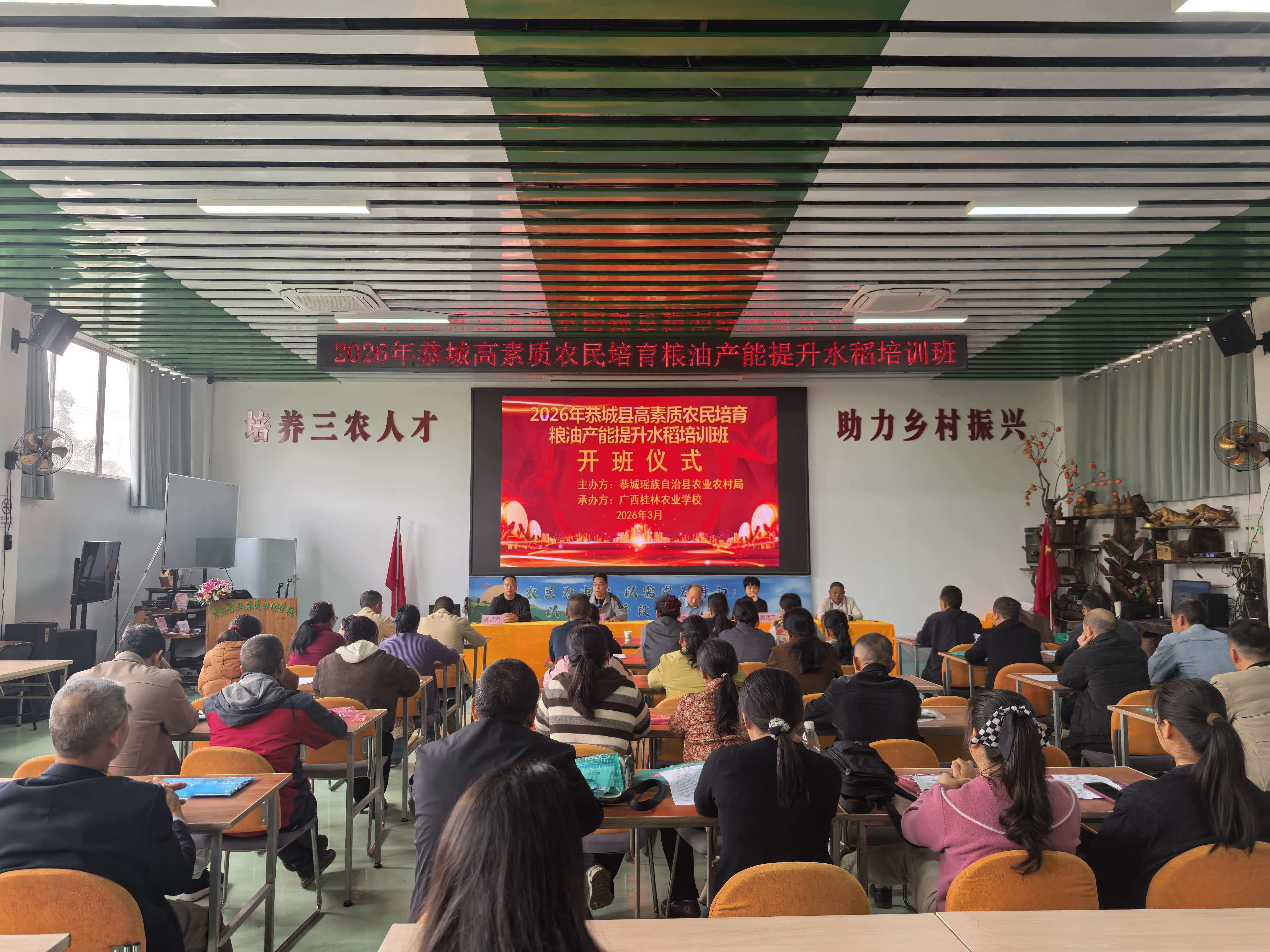 3月30日,2026年恭城瑶族自治县高素质农民培育粮油产能提升专题培训班,在恭城镇门楼村全国优质县级农民田间学校正式开班。