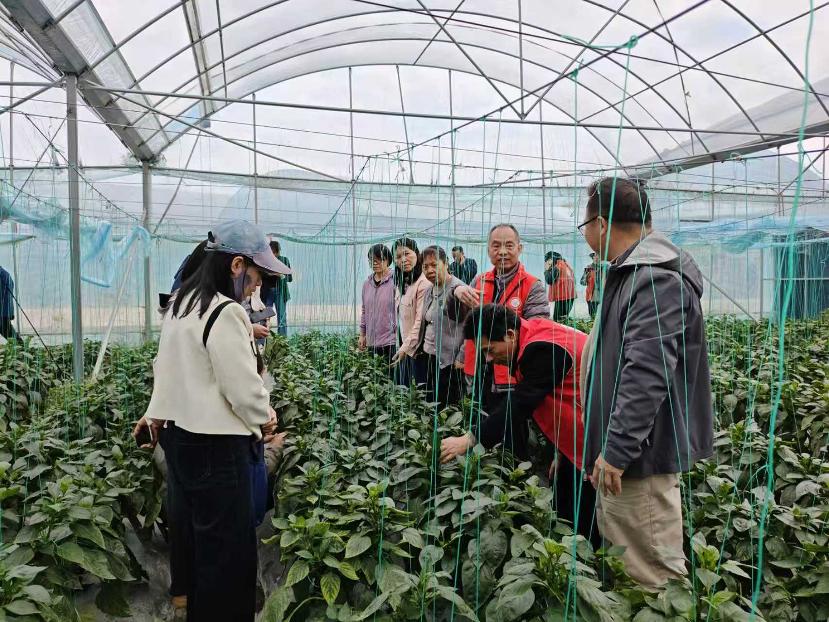 此次技术服务聚焦当前生产关键环节,重点围绕病虫害防控、田间管理、温湿度调控等内容开展。服务现场,特派团成员深入棚内,仔细查看五彩椒长势,针对春季易发生的病害、虫害问题,现场诊断并给出科学防控方案,同时就水肥管理、植株调整等技术要点向基地种植户进行细致指导,切实解决生产中的实际难题,助力基地提升种植效益,推动特色蔬菜产业高质量发展。