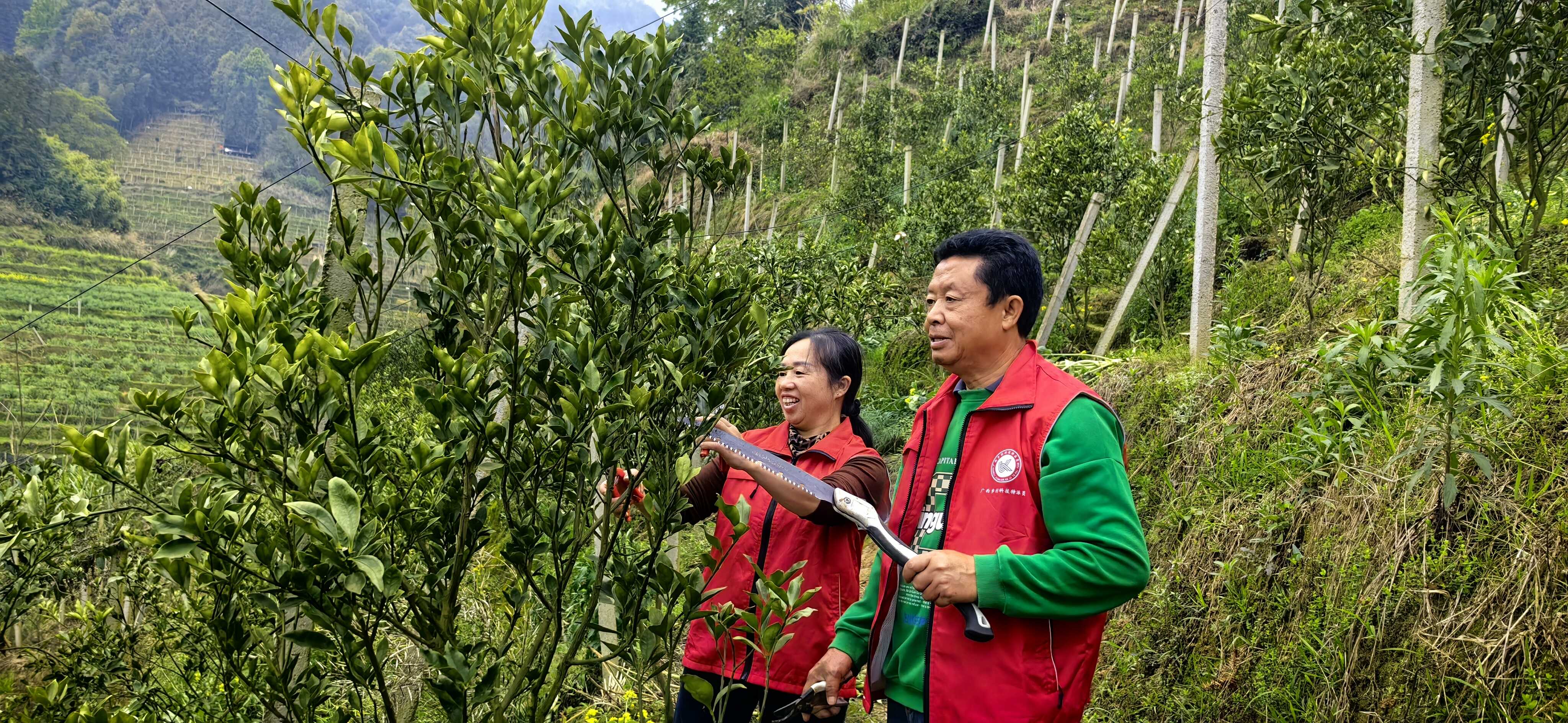 在龙胜镇山东村的脆蜜金桔种植园里,“两果+特色作物产业组”的科技特派员们正俯身田间,手把手指导农户开展脆蜜金桔树春季修剪工作。春季是脆蜜金桔树生长的关键阶段,科学的整形修剪不仅能够促发健壮春梢,还能帮助果树构建合理丰产骨架,是实现金桔优质高产的核心环节。