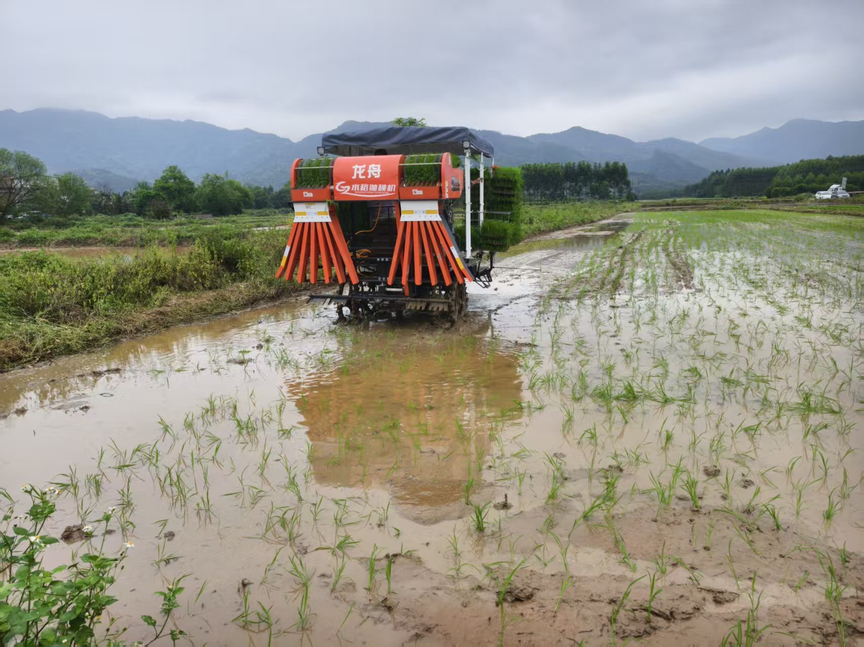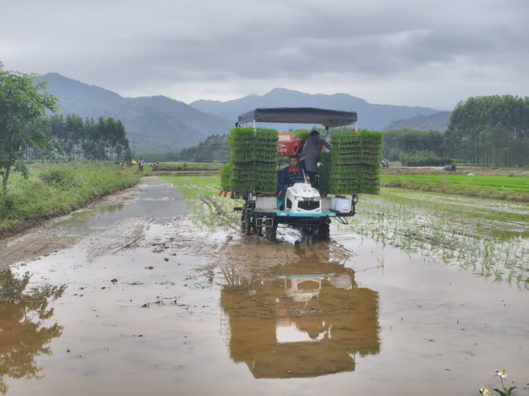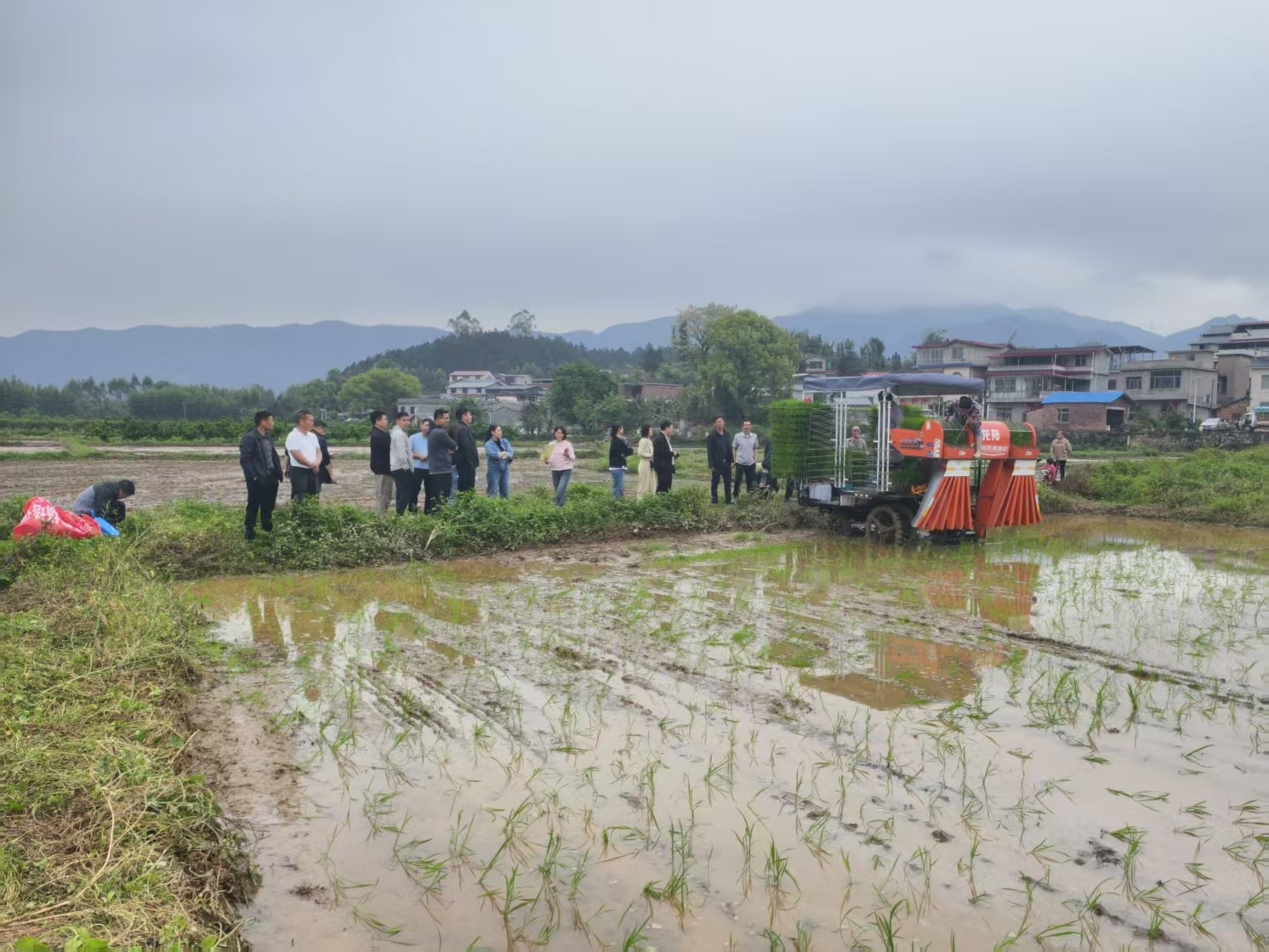 4月15日,永福县农机中心联合县推广站在广福乡水稻种植基地组织开展2026年基层农技推广体系改革与建设补助项目现场培训会,全县各乡镇的水稻种植大户前来参训。培训现场,一台14行水稻抛秧机正有序地进行抛秧作业,机器驶过之处,14排嫩绿的秧苗顺着导管整齐落入田中。