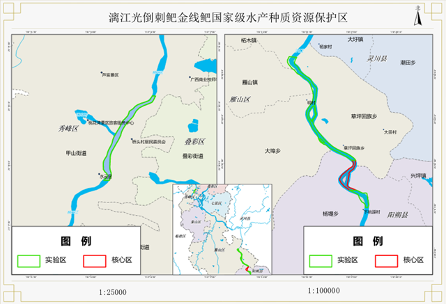 2、漓江光倒刺鲃金线鲃国家级水产种质资源保护区范围图