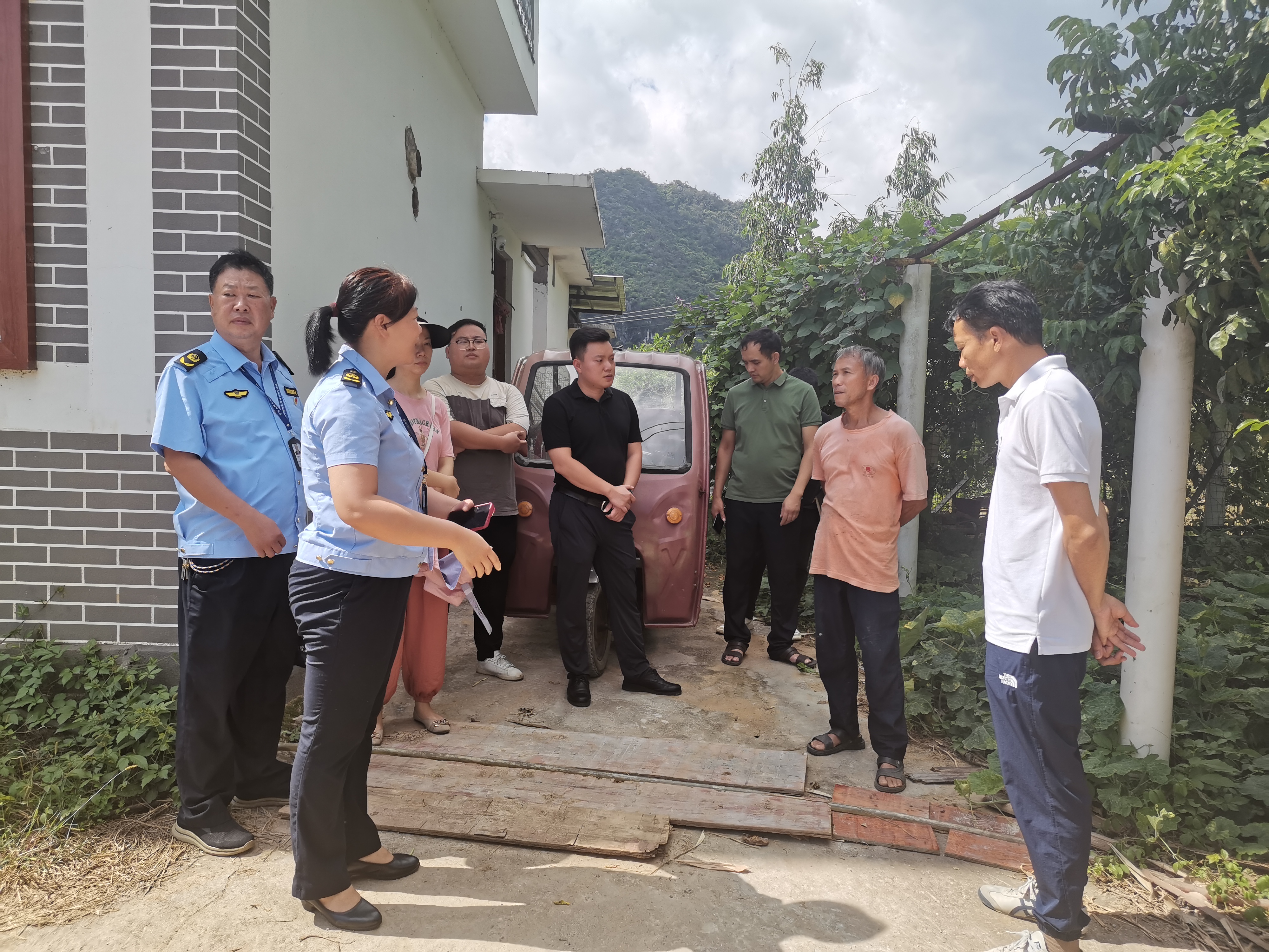 市局人员在雁山区草坪乡潜经村向农户讲解宅基地政策