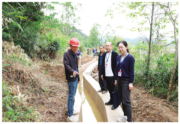 荔浦市委各巡察组围绕村级集体“三资”管理、惠农政策落实、农村人居环境等方面,深入田间地头、项目一线收集群众“急难愁盼”问题,实现靶向巡察。图为荔浦市委第一巡察组干部在茶城乡对小型水利项目进行走访。